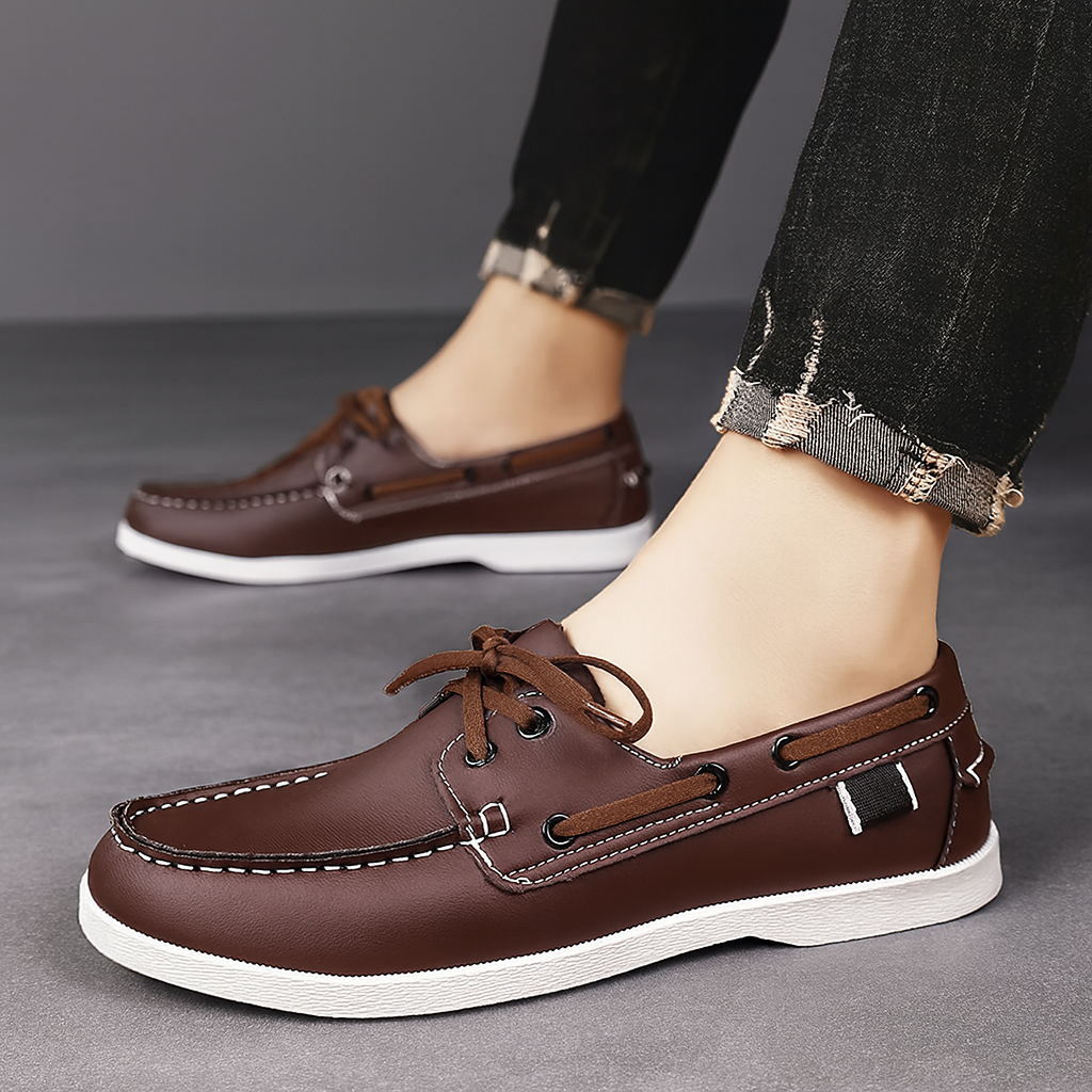 Crafted with smooth uppers, moc-toe stitching, and nautical-inspired lacing, the Alden Deck Sneaker is set on a cushioned white rubber sole. Designed for versatility, it pairs effortlessly with denim, chinos, or shorts.